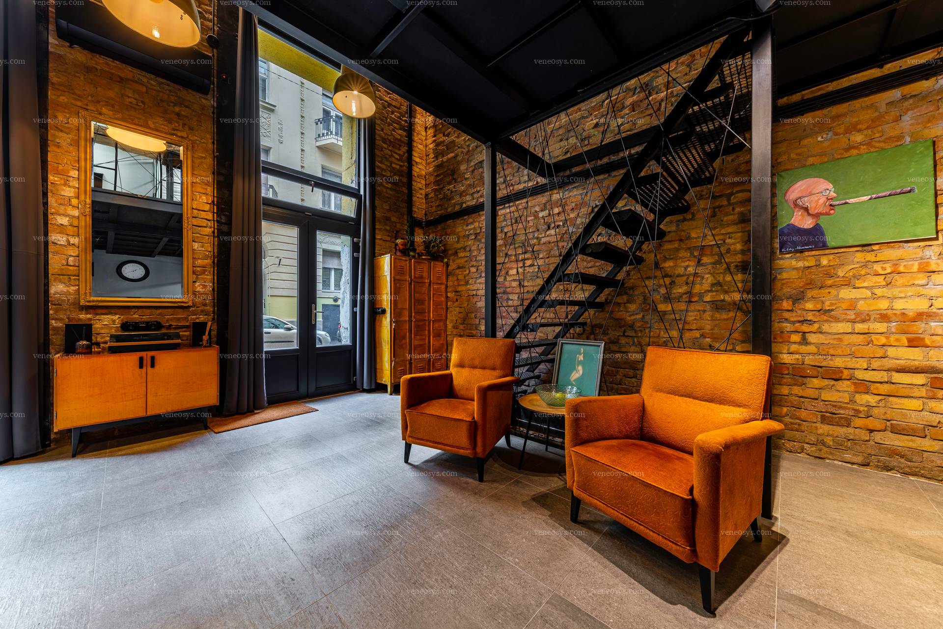 Ten unikalnie zaprojektowany apartament  jest na sprzedaż w Budapeszcie, w dzielnicy VIII, przy ulicy Visi Imre. Stylowe miejsce, w którym można zrealizować niemal każdy pomysł, od mieszkalnia po własny biznes. Mieszkanie w rzeczywistości ma powierzchnię 135 m2, ale według księgi wieczystej ma 106 m2. Nieruchomość na osobne wejście z ulicy, dwa ogromne okna (4,35 m wysokości), sufit na wysokości 5,25 m. Wyposażony jest w dwie toalety oraz łazienkę z prysznicem. Posiada w pełni wyposażona kuchnię o powierzchni 19 m2. Ogrzewanie jest elektryczni elektryczne, latem klimatyzowane.