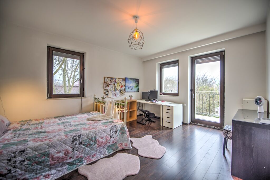 Pierwsze piętro: – 4 pokoje z czego 2 posiadają balkony – 2 łazienki – Pomieszczenie gospodarcze – Garderoba