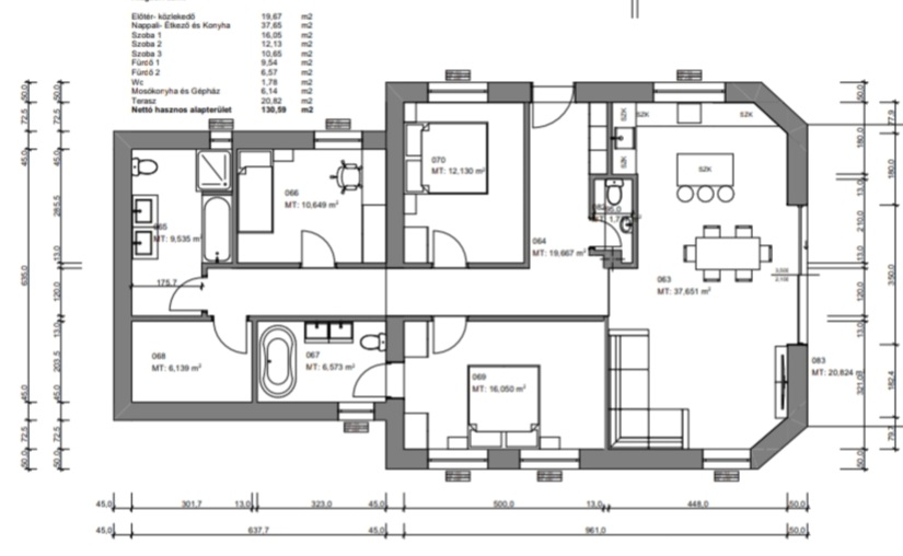 Powierzchnia użytkowa: 120,18 m2 + 20,812 m2 tarasu + 250 m2 prywatnego ogrodu.