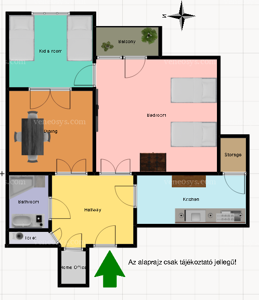 Ponad 3-pokojowe mieszkanie, o dobrym układzie pomieszczeń, wymagające niewielkiego remontu, na pierwszym piętrze domu, nadające się również na biuro lub gabinet, u stóp góry Gellerta, przy skrzyżowaniu ulicy Alsóhegy i drogi Hegyalja.